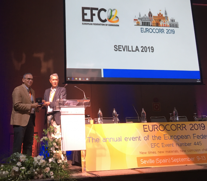 La remise de la grande médaille du CEFRACOR au Professeur Gerald Frankel a eu lieu le 10 septembre 2019, à l'ouverture de la session Mechanisms, Methods and Modeling du congrès EUROCORR 2019 à Séville.