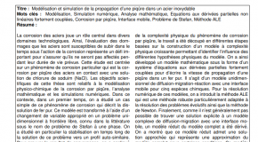 MODÉLISATION ET SIMULATION DE LA VITESSE DE PROPAGATION D'UNE PIQÛRE DE CORROSION. Soutenance de thèse