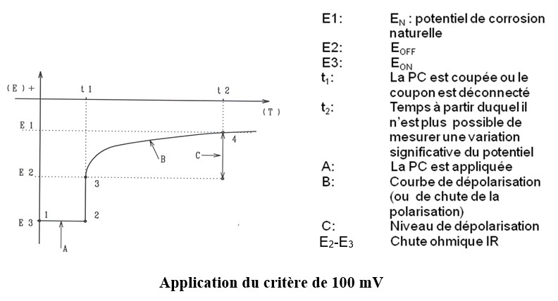 Le critère de 100mV peut être appliqué avec précautions comme alternative sur les ouvrages enterrés, comme expliqué ci-après.